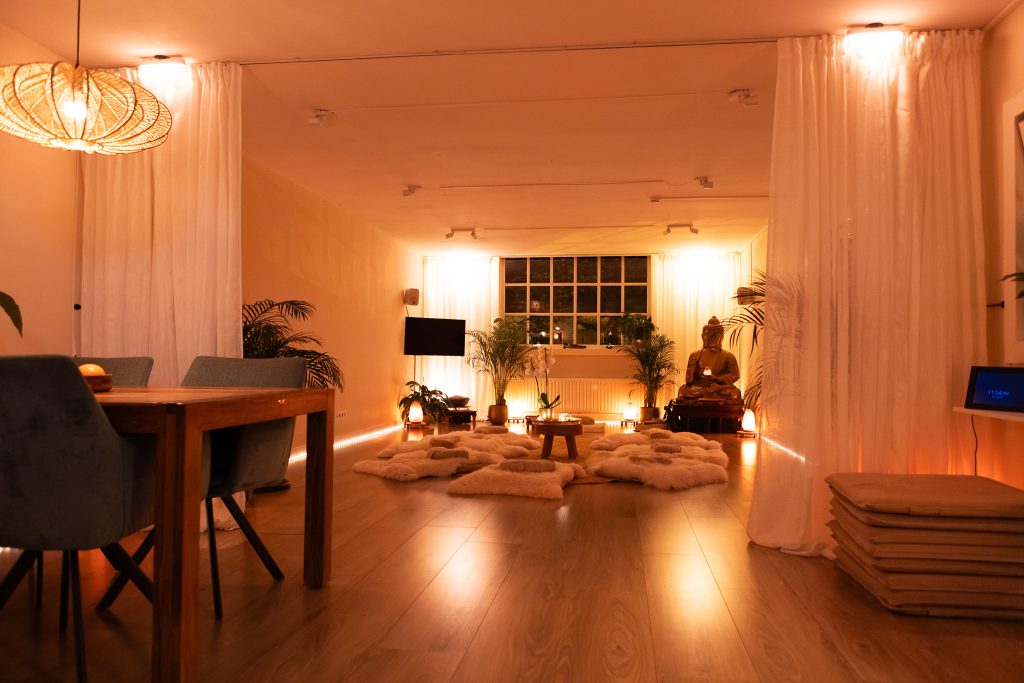 Onze ruimte is speciaal ontworpen voor meditatie en ademt rust en aandacht.